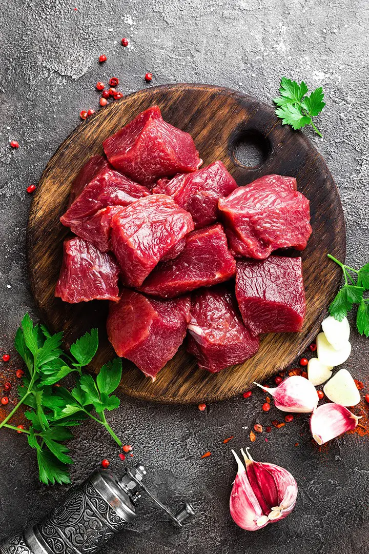 - Dana Kuşbaşı Et: Dana etinden kesilen ve küçük parçalara doğranan kuşbaşı ettir. Bu çeşit kuşbaşı et, dananın farklı bölgelerinden elde edilebilir ve genellikle sulu yemeklerde, güveçlerde veya etli pilav gibi tariflerde kullanılır.